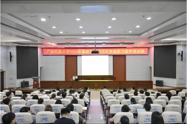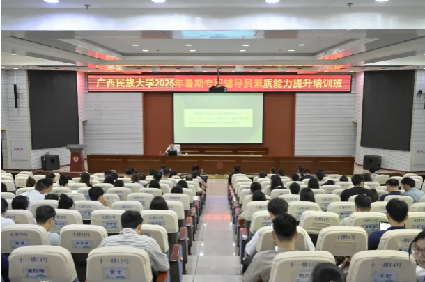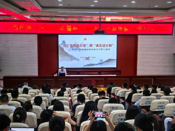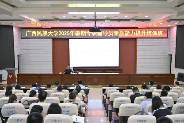 为进一步加强学校辅导员队伍建设,提升辅导员的思政工作能力和专业技能素养,推动辅导员专业化、职业化发展,8月20—22日学校在相思湖校区科技楼报告厅举办2025年暑假专职辅导员素质能力提升培训班。自治区教育厅关工委主任赵益真、学校党委副书记陈铭彬、学报编辑部执行主编王东昕、华中师范大学大学生心理健康教育中心主任吴才智、学校法律顾问张仕明等专家领导作专题培训,全体专职辅导员参训。