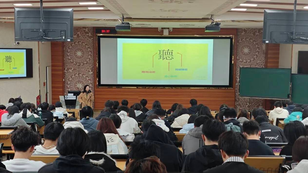桂林电子科技大学的张华东副教授,在相思湖校区带来了一场主题为《如何做好一名朋辈心理互助员》的专题讲座。张华东结合高校学生的心理特点,从朋辈互助的核心价值、沟通技巧、危机识别与应对等多个方面展开详细讲解。他借助真实案例进行剖析,生动地阐释了倾听共情、积极关注等实用方法,着重强调互助员要秉持真诚尊重的原则,既要成为同学倾诉心声的“暖心树洞”,又要掌握科学的心理支持边界。