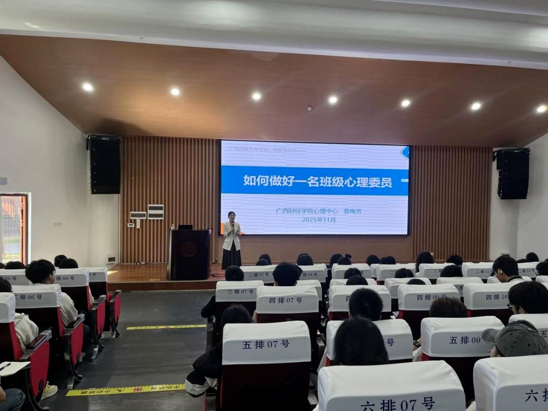 广西财经学院的覃梅芳副教授,分别在思源湖校区和武鸣校区开展题为《如何做好一名班级心理委员》的专题讲座。覃梅芳从心理委员的核心定义入手,系统且详细地讲解了岗位职责与工作边界,并结合实际案例,深入剖析了心理委员在班级心理健康工作中的角色价值。她着重强调了思想道德素养、沟通协调能力等核心素质的重要性,以此帮助学员明确工作方向。